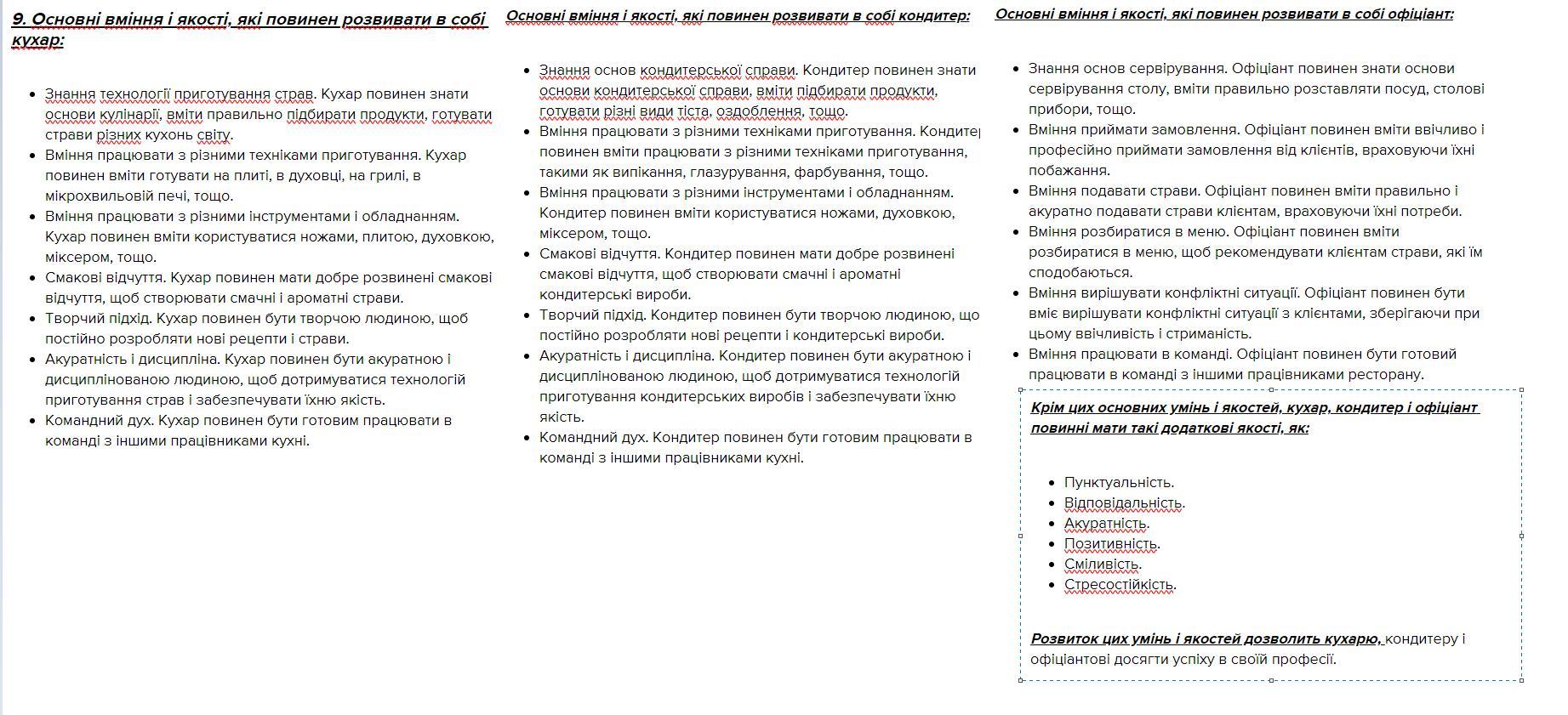 1. Розкрийте різницю понять «мораль» і «аморальність» 2. Розкрийте основні правила ефективного спілкування. 3. Обгрунтуйте важливість знань про основні типи поведінки людей для забезпечення ефективності ділового спілкування. 4. Назвіть засоби спілкування та схарактеризуйте їх. 5. Обгрунтуйте значення взаєморозуміння для ділових відносин. 6. Поясніть переваги гнучкості для досягнення взаєморозуміння та мети спілкування. 7. Дати визначення поняттю «конфлікт». Назвати причини виникнення конфліктів на підприємстві та шляхи його подолання. 8. Що таке імідж? Назвіть складові позитивного іміджу ділової людини. 9. Назвати основні вміння і якості, які повинен розвивати в собі кухар, кондитер, офіціант.
