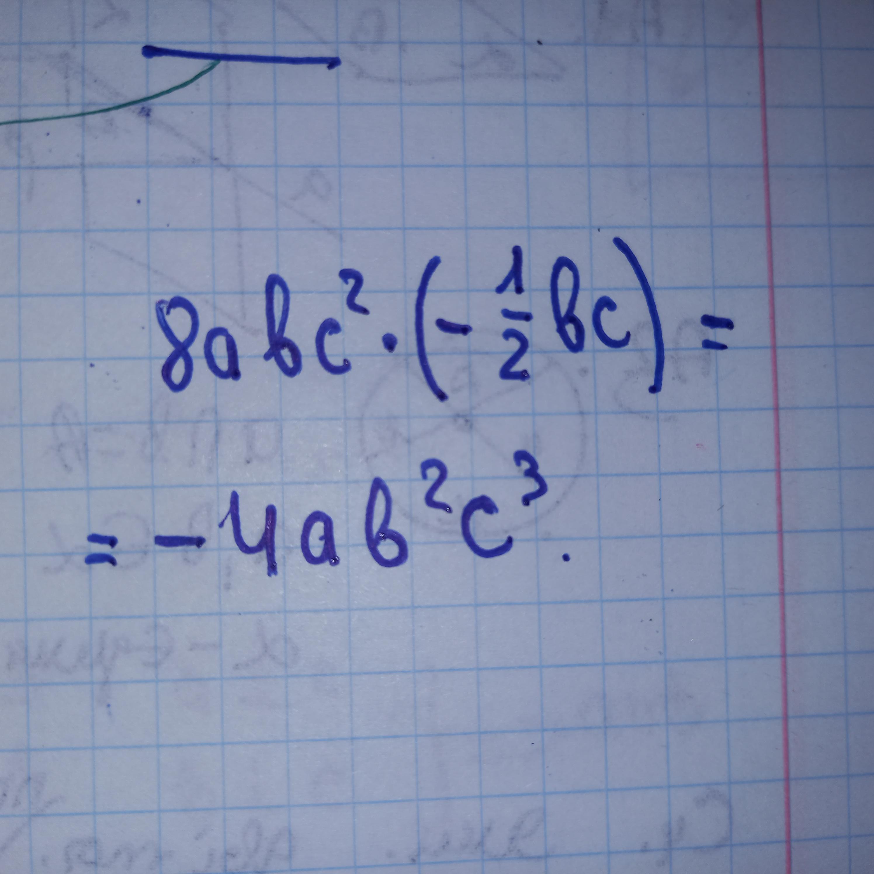 Ответ:8abc^2*(-1/2bc)=8*-1/2=-4ab^2c^3