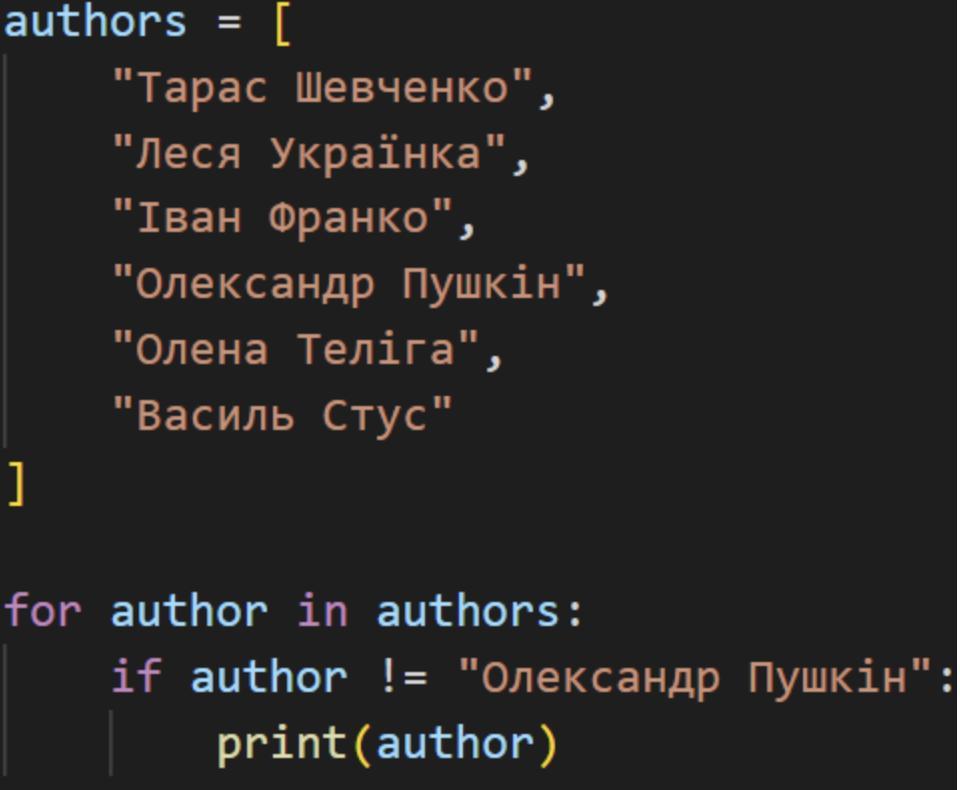 виведе все крім Олександр Пушкін