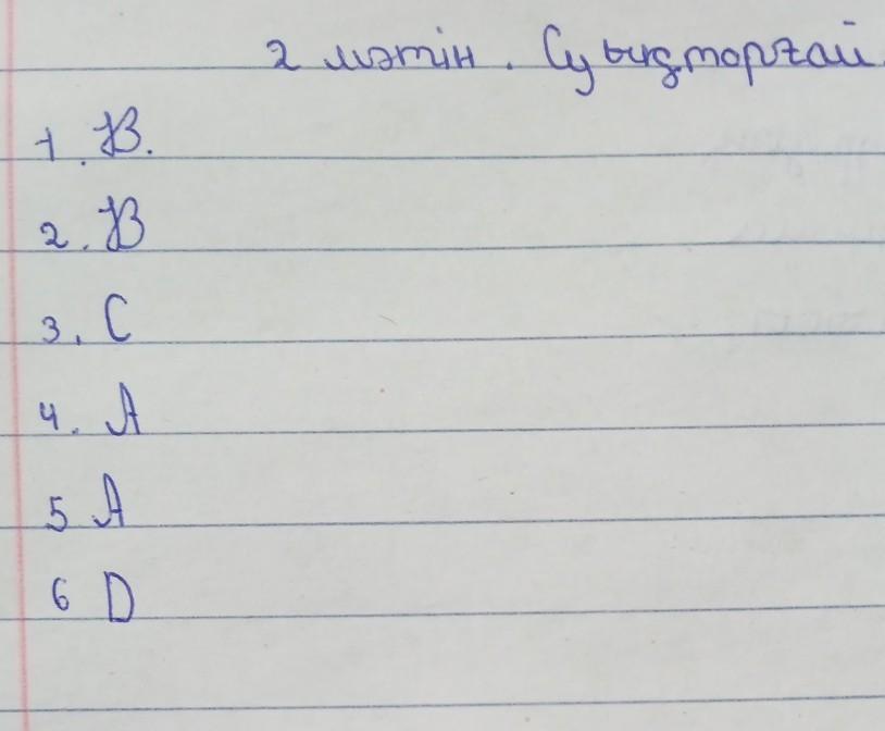 2. Суыкторган Суыкторгай - кыста ушып келіп, қар жамылган агаштарга қонатын құс, шын мәнінде, кыскы табигатка сулулык береді. Суыкторгай өлшемi жагынан кәдiмгi торгайдай, денесiнiн ұзындығы шамамен 18 см. Тебесі, канаты, куйрыгы кара, мойнынын үстi мен аркасы сургылт, бауыры (аталыгында) кызгылт, ал аналыгында коныр, сур түстi. тумсыгы шомбал, көлемдi, кыска, кара түсті болып келедi. Суыкторгайлар әдетте шагын уйiрiмен мекендейдi. Алгашкы кар жауғаннан кейiн, суыкторгайлар туган ормандарын тастап, елiмiздiн барлык аймактарына дерлiк ұшып бара бастайды. Олардын суыкторгай аталуы да кар тускеннен кейiн адамдар емiр сүретiн елдi мекендер мен калалардын, бактардын, саябактардын манында пайда болуымен байланысты болу керек. Аяз негұрлым куштi болса, суыкторгайлар уйiрi согурлым тыныш отырады. Кейде орнынан ұшып барып жидектi жулып жеп, содан кейiн бiраз уакытка дейiн қайтадан козгалыссыз отырады. Кунi бойгы әрекеті сол. Карангылыктүсiсiменбарлыкуйірбұталарганемесеағаштаргаконып, сол жерде тунейдi. Олар жаксы ұшады, агаштар мен бұталардын түбiнде тез козгалады. Калын тұмсығымен ол жидектердiн немесе кiшкентай жаңгактардын тукымын шагады. Суыкторгайларшетенжидектерiмен, мамыргүлдің, қалакайдынтұкымдарымен, немесебүршіктермен, сондай- акбаска да жемістермен коректенеді, оларды тұмсығымен сым кескіштер сиякты тістейді. Шетеннін жидегiн жегеннен кейiн тұмсығын тазартады, себебі шетен тұқымдары оган жабысып калады. Тұмсығын тазалау кезiнде шетен тұкымдары жерге түсiп, көктемде енiп шыгады.Суыкторгай - сенiмдi және көпшіл кус. Уйiрден бiр кус какпанга тусiп калса, калгандары дереу куткаруға асығады. - Мәтінге сәйкес келетін мақал А. Әр кұс өз ұясын жаксы көреді. В. Бiрi- барлыгы ушiн, барлыгы - бiрi ушiн С. Құс патшасы - буркiт, ан патшасы - арыстан Д. кыста кысыл, жазда жадыра - Мәтiнде карамен берiлген - А. салыстыру В. Бейнелеу С. Метафора Д. эпитет -Суыкторгайлар калай мекендейді? А. Топтасып В. Жалгыз С. Уйiрiмен Д. жұбымен - Суыкторгайлар кайда сұлулык береді? А. кыскы табиғатқа Катты аязда суыкторгайлар .... В. жазгы табигатка С. кузгі табигатка Д.кектемгі табиғатқа А. агашта козалмай отырады В. агаштан ағашқа ұшады С. жерге түседі Д. жорғалап жүредi Уйiрден бір суыкторгай какпанга түсiп калса, калгандары кайтеді? А. жерге конады В. агашка конады С. буталарда отырады Д. куткаруга асыгады -
