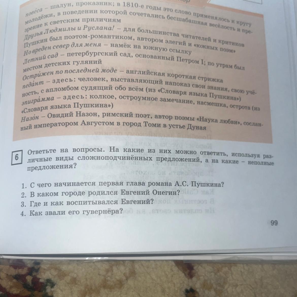 1)Первая глава романа А.с. Пушкина начинается с дяди, который был болен, ему нужен был уход.(сложно-подчинённое предложение).