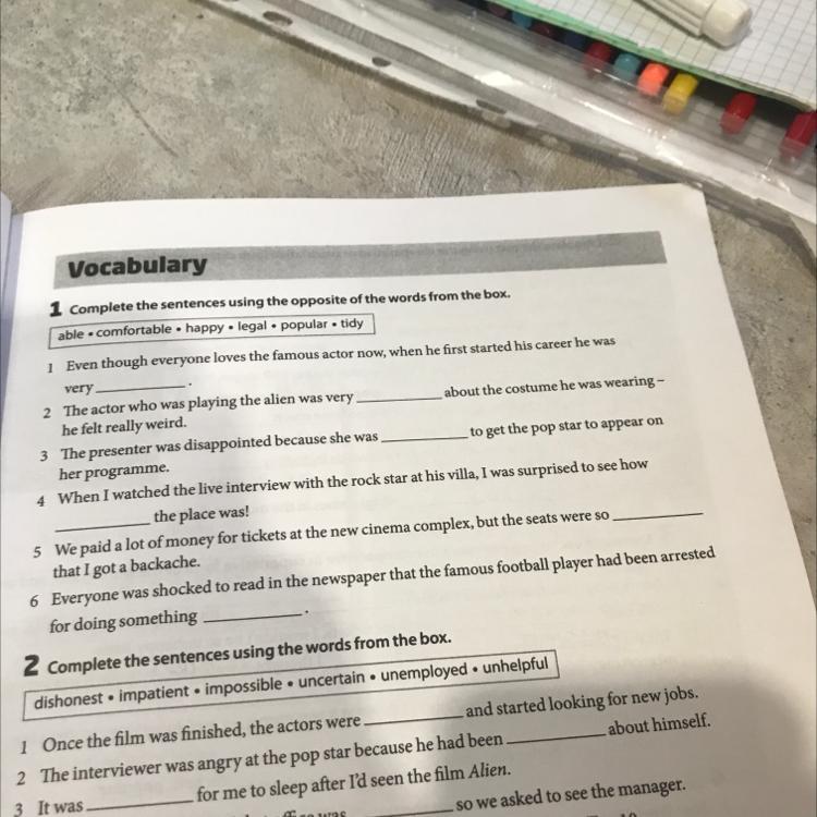 5. We paid a lot of money for tickets at the new cinema complex, but the seats were so **uncomfortable** that I got a backache.