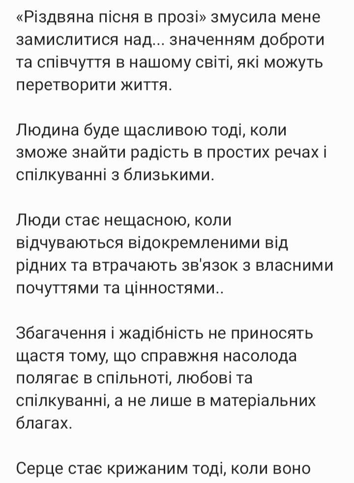 СРОЧНО 75 БАЛОООООВ Вправа «Незакінчені речення» «Різдвяна пісня в прозі» змусила мене замислитися над... Людина буде щасливою тоді... Люди стає нещасною , коли ... Збагачення і жадібність не приносять щастя тому, що... Серце стає крижаним тоді ..., але його розтопить ... Найдорожче в житті для мене ... ⒸAépocaina