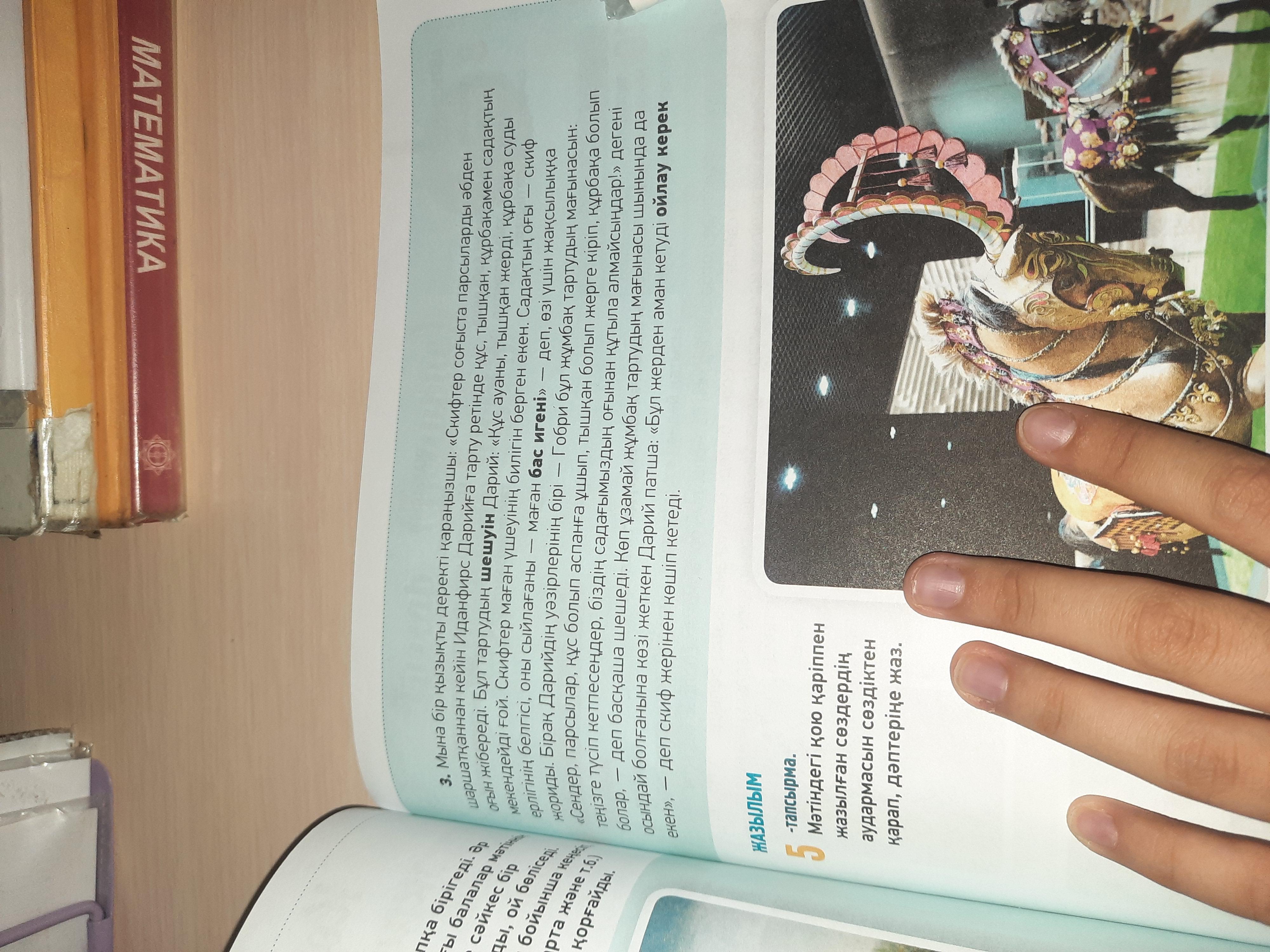 Мұғалiмнiң көмегімен мәтіндегі қою қарiппен жазылған сөздердің мағынасын түсініп алыңдар. Мәтiнiң мазмұнынан суреттерге қатысты сөйлемдерді табыңдар. Сақтардың жылқысын суреттеп айтыңдар. Антоним сөздерді қолданыңдар