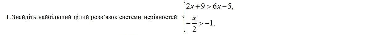 полным решением системы яв-ся промежуток,где одновременно пересекаются две штриховки.(х∈ (-∞;2).Но т.к неравенство строгое,то точка 2 не принадлежит промежутку,т.е она как бы "выколота",поэтому наименьшее целое решение это число 1