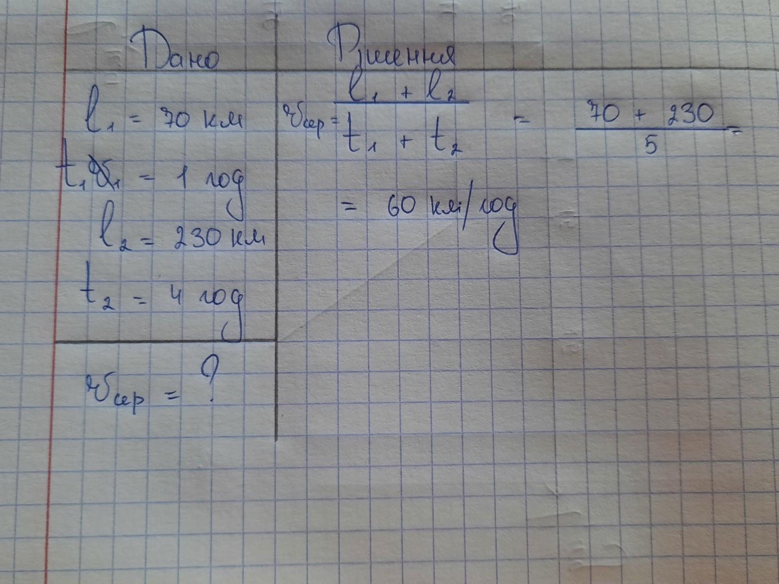 4. Автомобіль проїхав 70 км за 1 год, а потім ще 230 км за 4 год. Яка середня швидкість на всьому шляху?