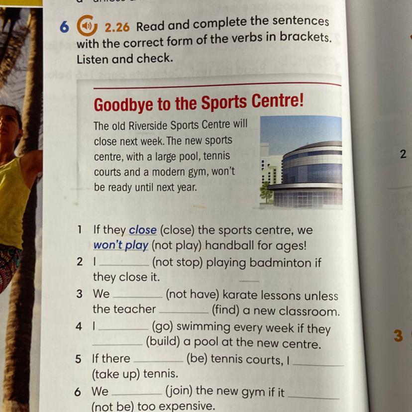 4. i will go to swimming every week if they will build a pool at the new centre.