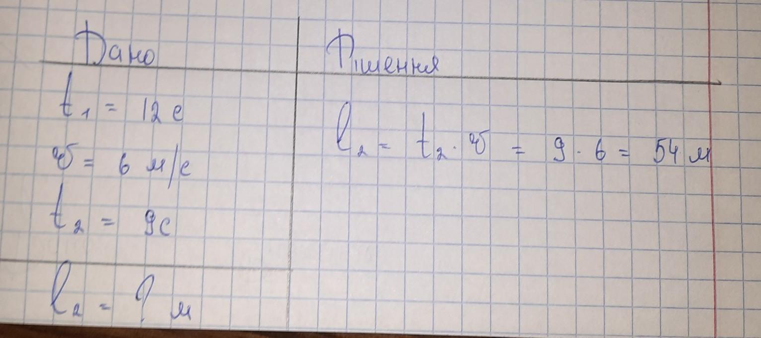 Велосипедист 12 с рухався зі швидкістю 6 м/с . Який шлях він пройде за 9 с рухаючись з тією ж самою швидкістю