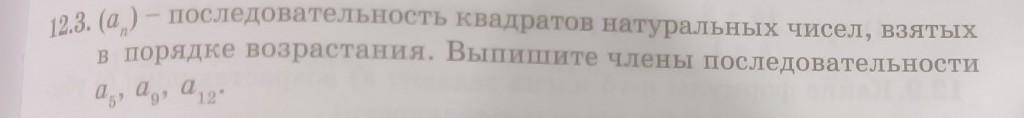 12.3. (а.) - последовательность квадратов натуральных чисел, взятых в порядке возрастания. Выпишите члены последовательности as a 12