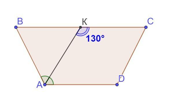 Нехай ABCD - дана рівнобічна трапеція, BC║AD, AB=CD, АК-бісектриса, АК∩ВС=К, ∠АКС=130°.