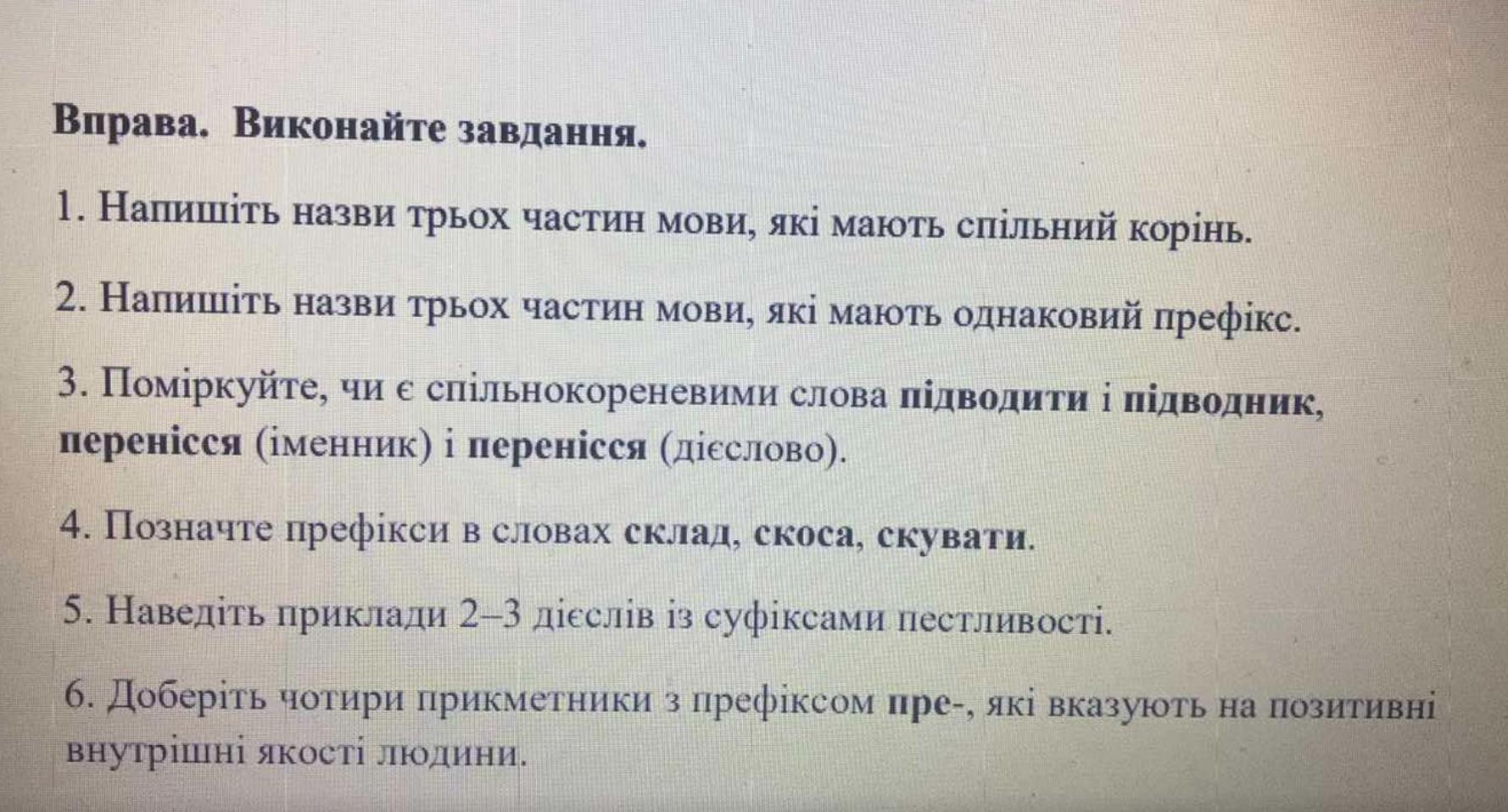 Частини мови з однаковим префіксом: