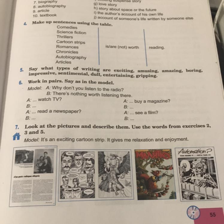 Там нужно использовать слова из 2,3 и 5 упражнения. Покажи их тогда спокойно сделаю