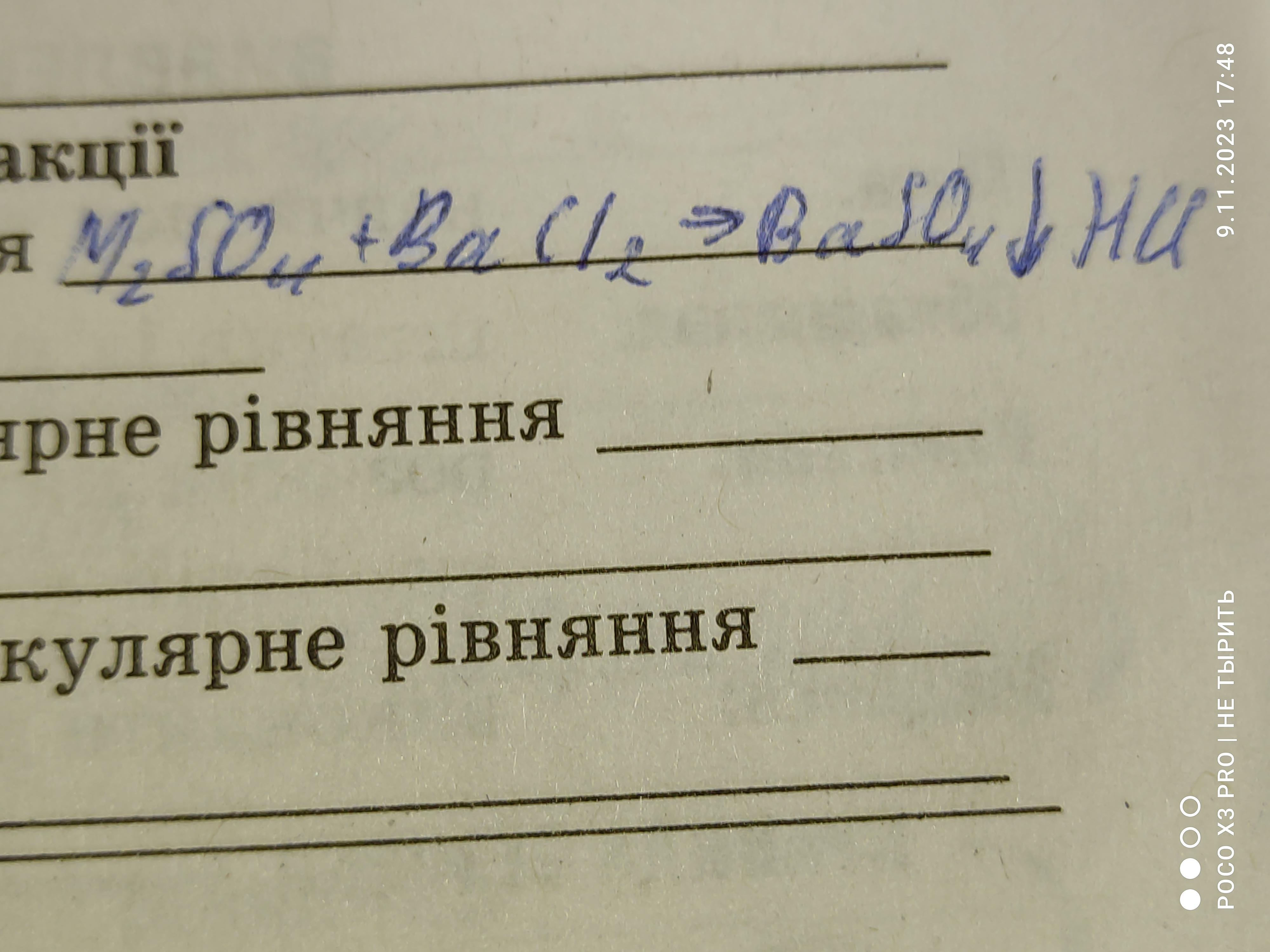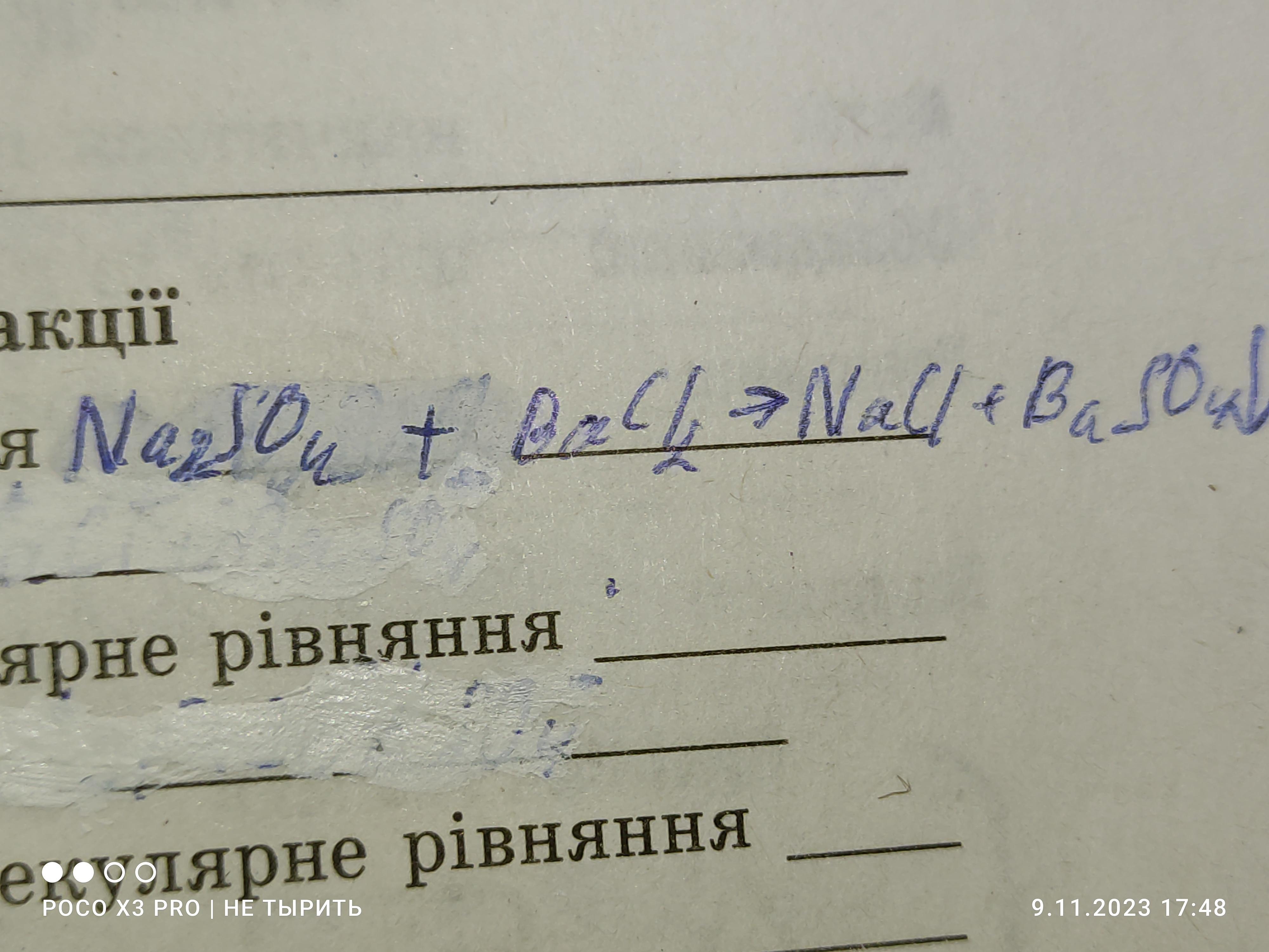 Хімія 9 клас лаб.дослід №8 розкласти на йонно молекулярні рівняння повні та скорочені