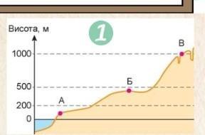 - Туристка перебуває в точцi Б і планує пiднятися до точки В. Чи буде цей шлях бiльшим (за відносною висотою), ніж якби вона рухалася вiд узбережжя моря до точки Б?