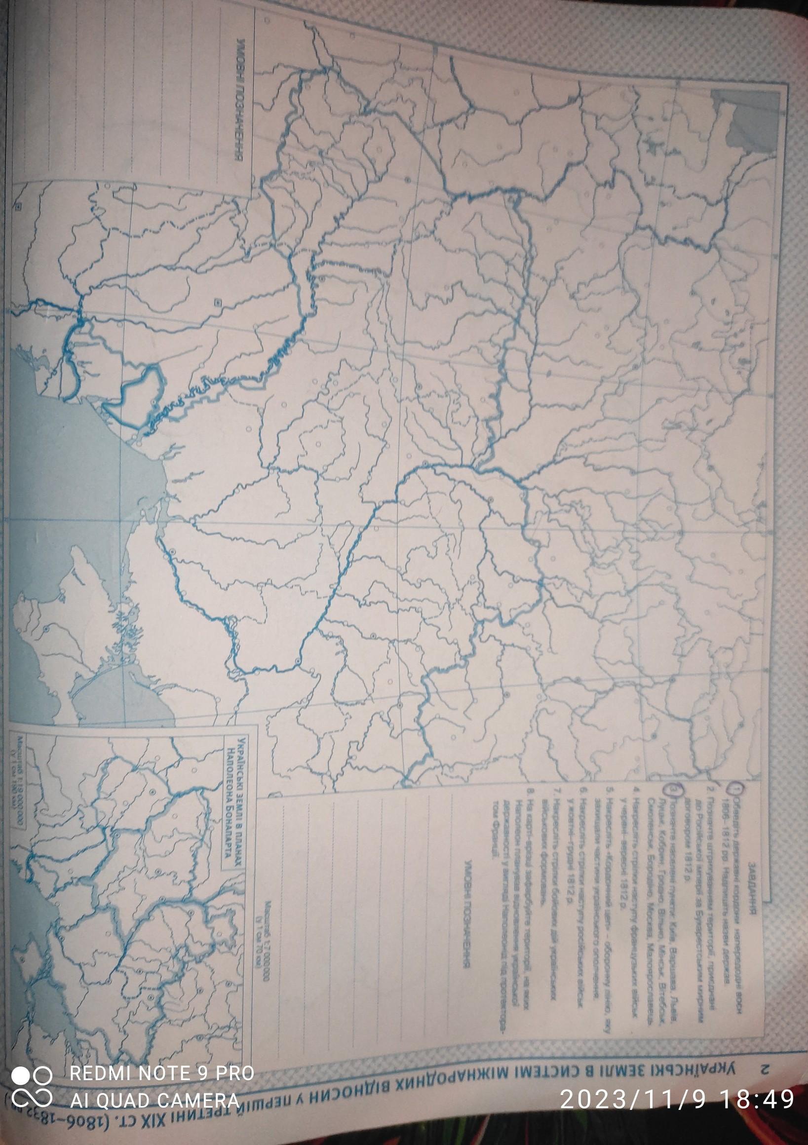1)Обведіть державні кордони напередодні воєн 1806-1812 рр. Надпишіть назви держав.