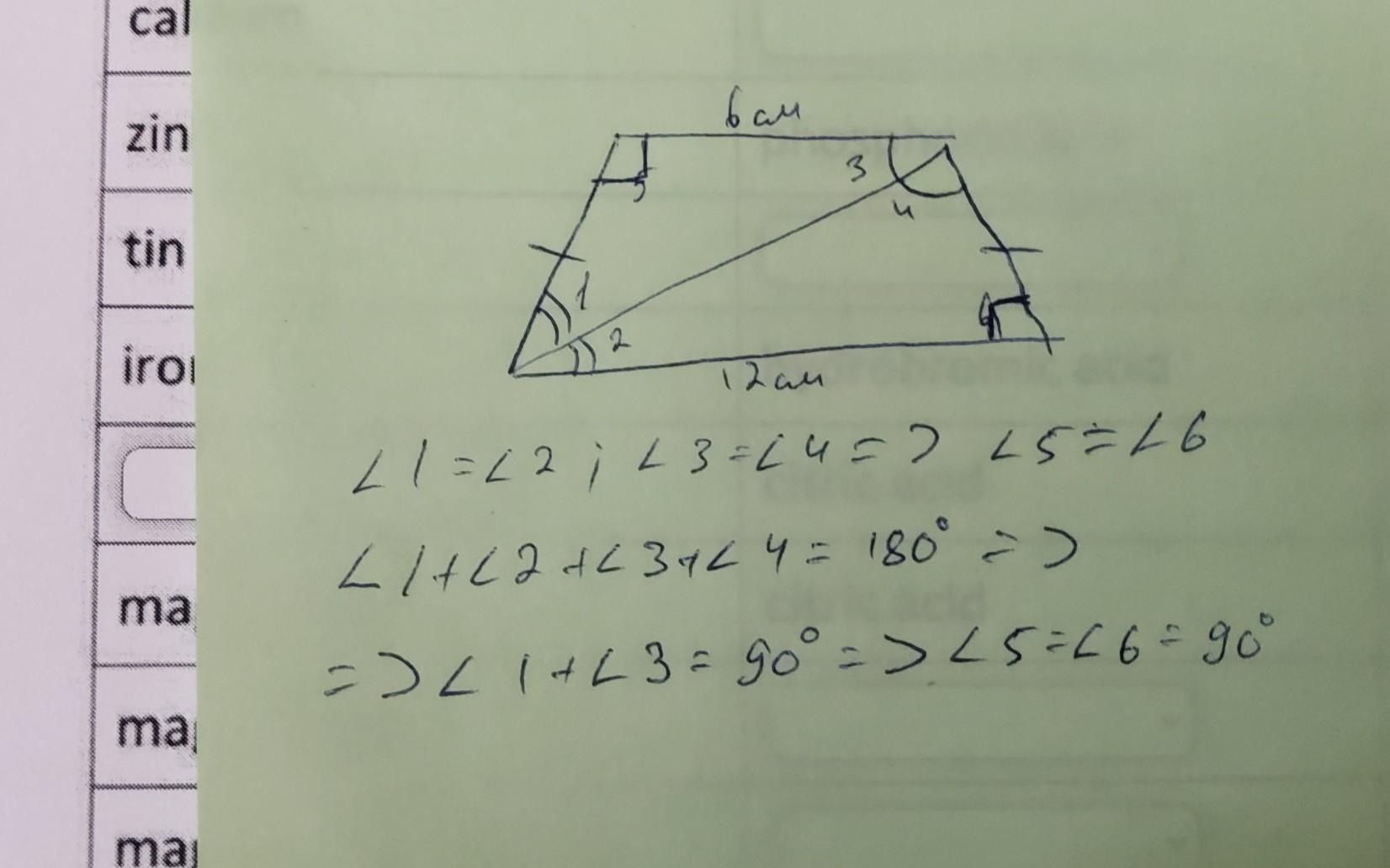 Діагональ рівнобічної трапеції ділить навпіл її тупий кут. Знайдіть периметр трапеції, якщо її основи дорівнюють 6 см і 12 см