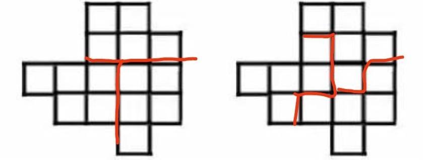 Разделите на три одинаковые фигуры по линиям сетки двумя способами