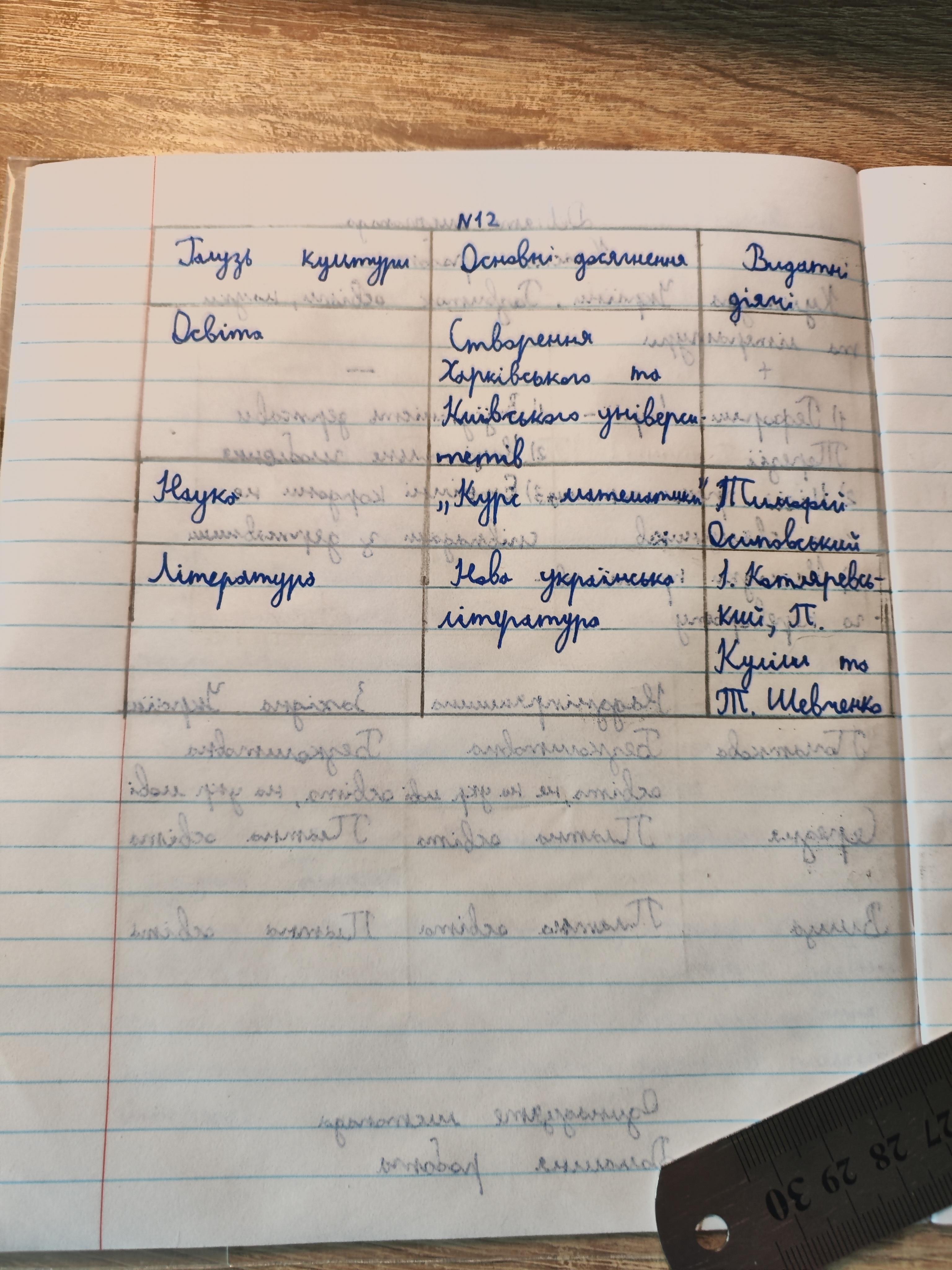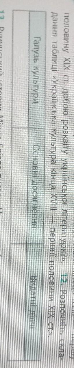 Розпочніть складання таблиці "Українська культура кінця 18 — першої половини 19ст."