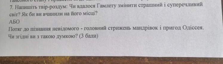 7. Напишіть твір-роздум: Чи вдалося Гамлету змінити страшний і суперечливий світ? Як би ви вчинили на його місці?