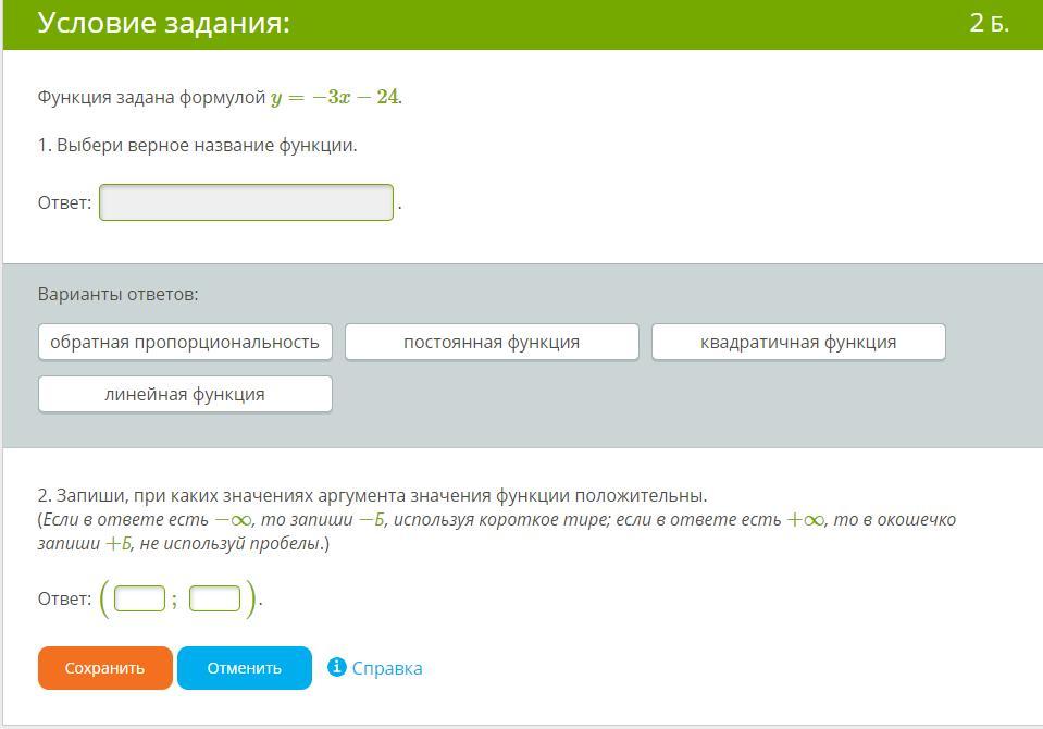 2. Запиши, при каких значениях аргумента значения функции положительны.