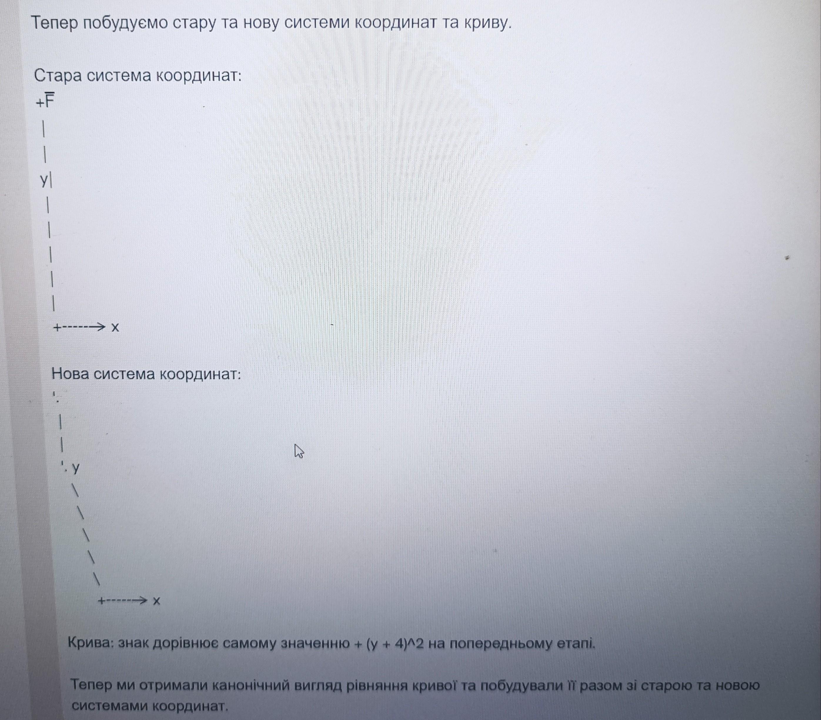 Тепер побудуємо стару та нову системи координат та криву: