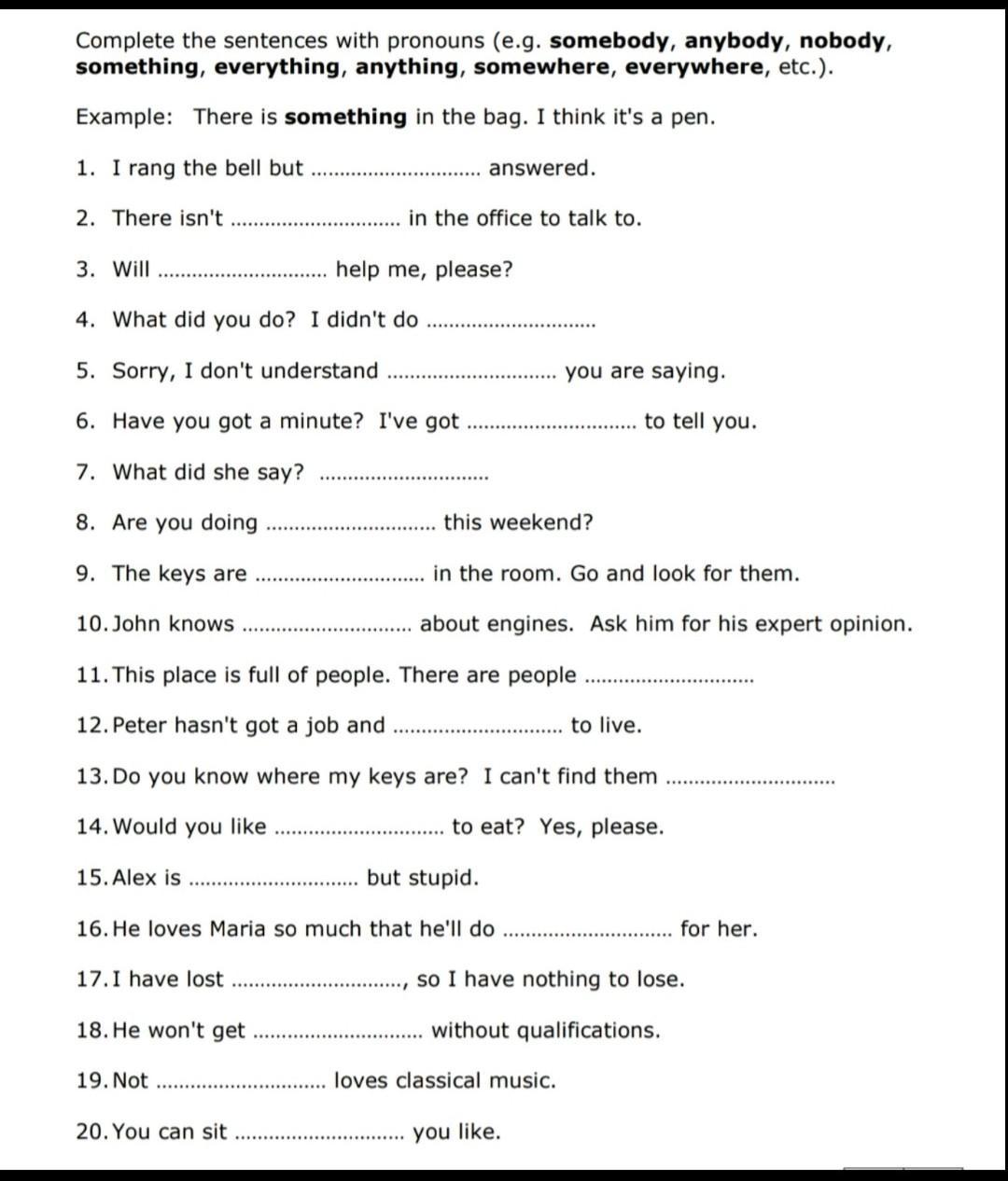 Ответ: Here are the possible answers to complete the sentences with pronouns: