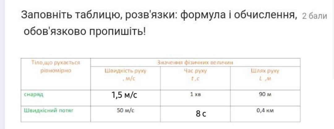 швидкість снаряду: v=l/t = 90 : 60 = 1,5 м/с