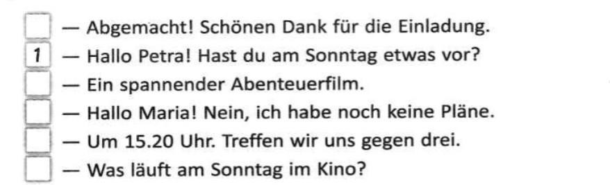 1. Hallo Petra! Hast du am Sonntag etwas vor?