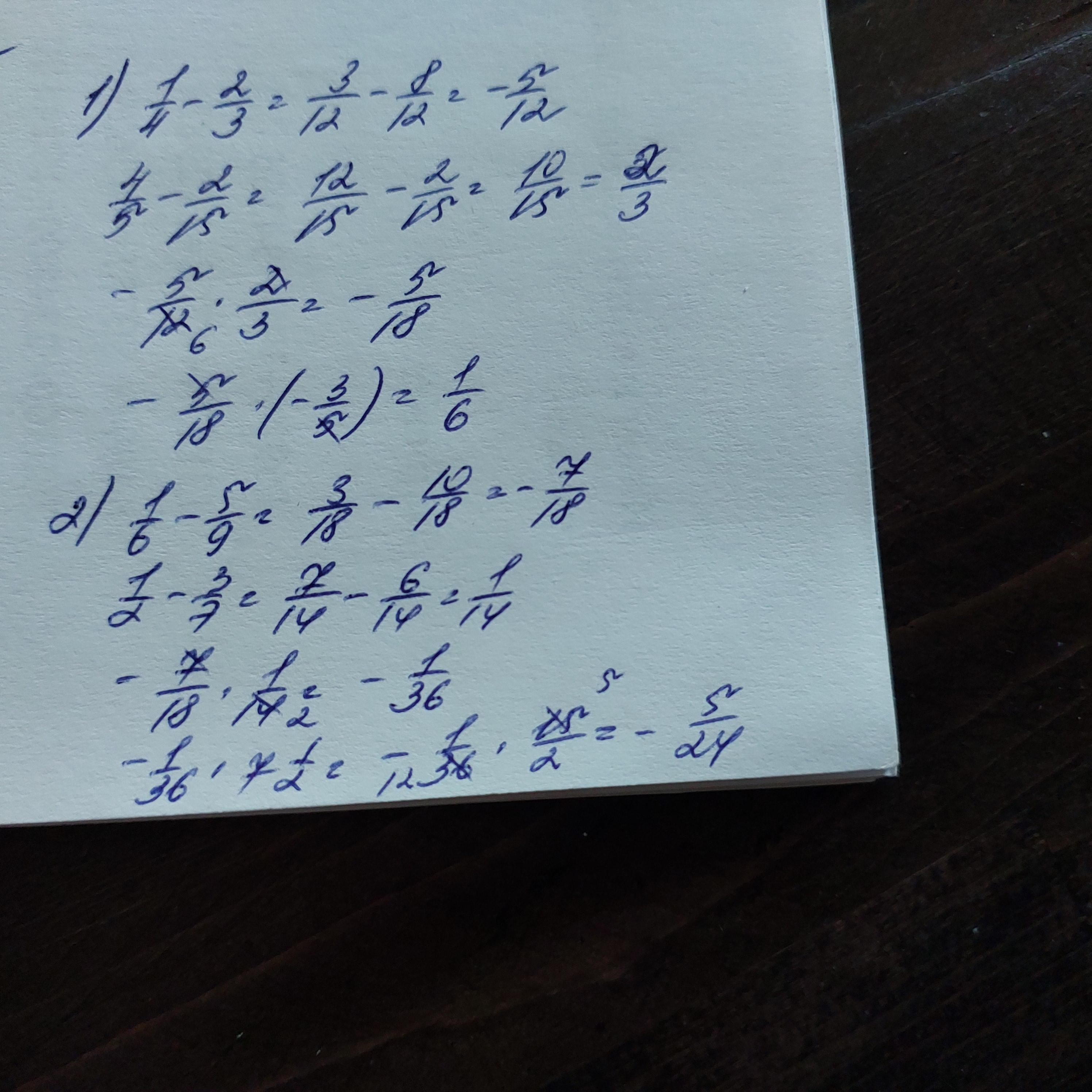 1) 1/4 - 2/3 = 3/12 - 8/12 = -5/12