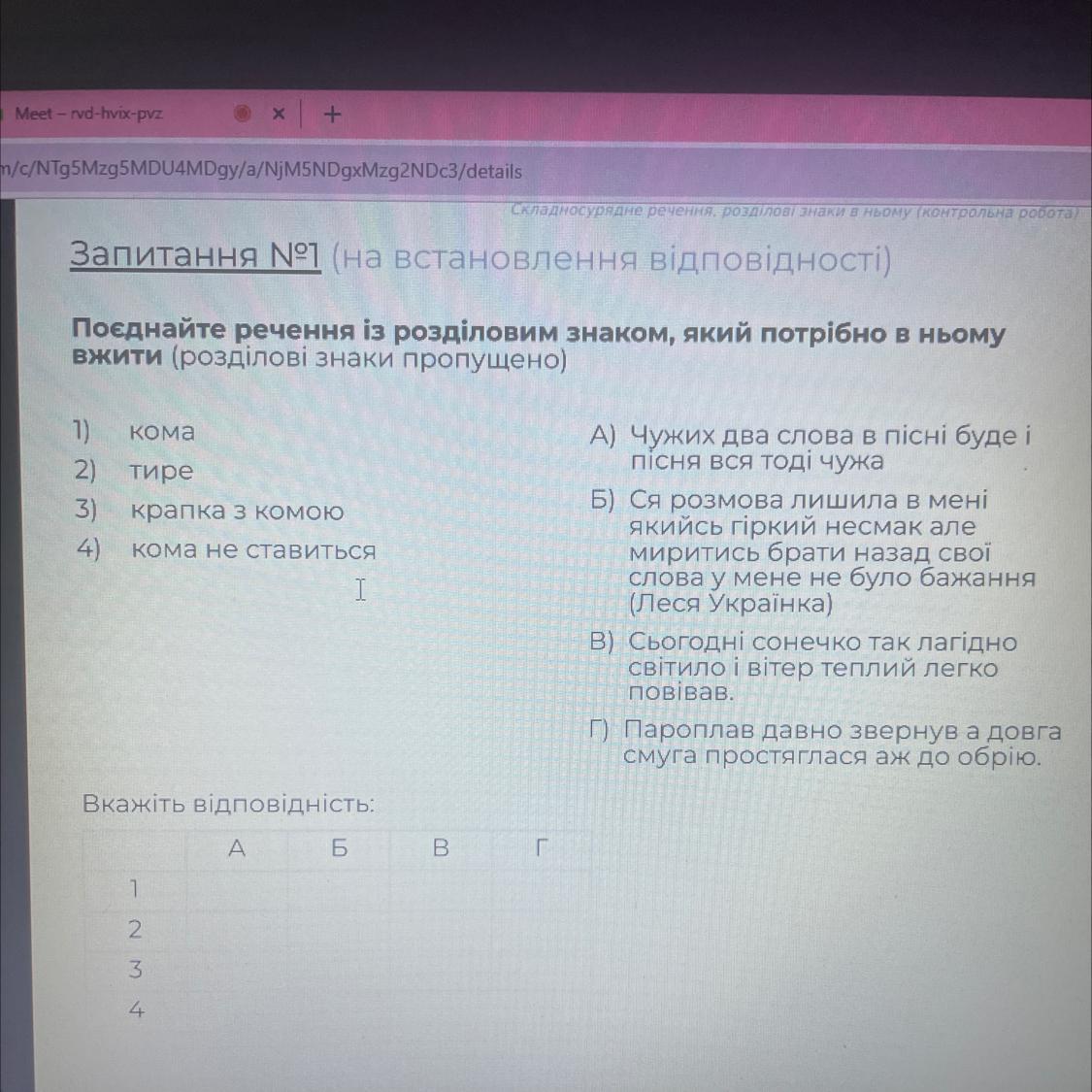 Поєднайте речення із розділовим знаком, який потрiбно в ньому