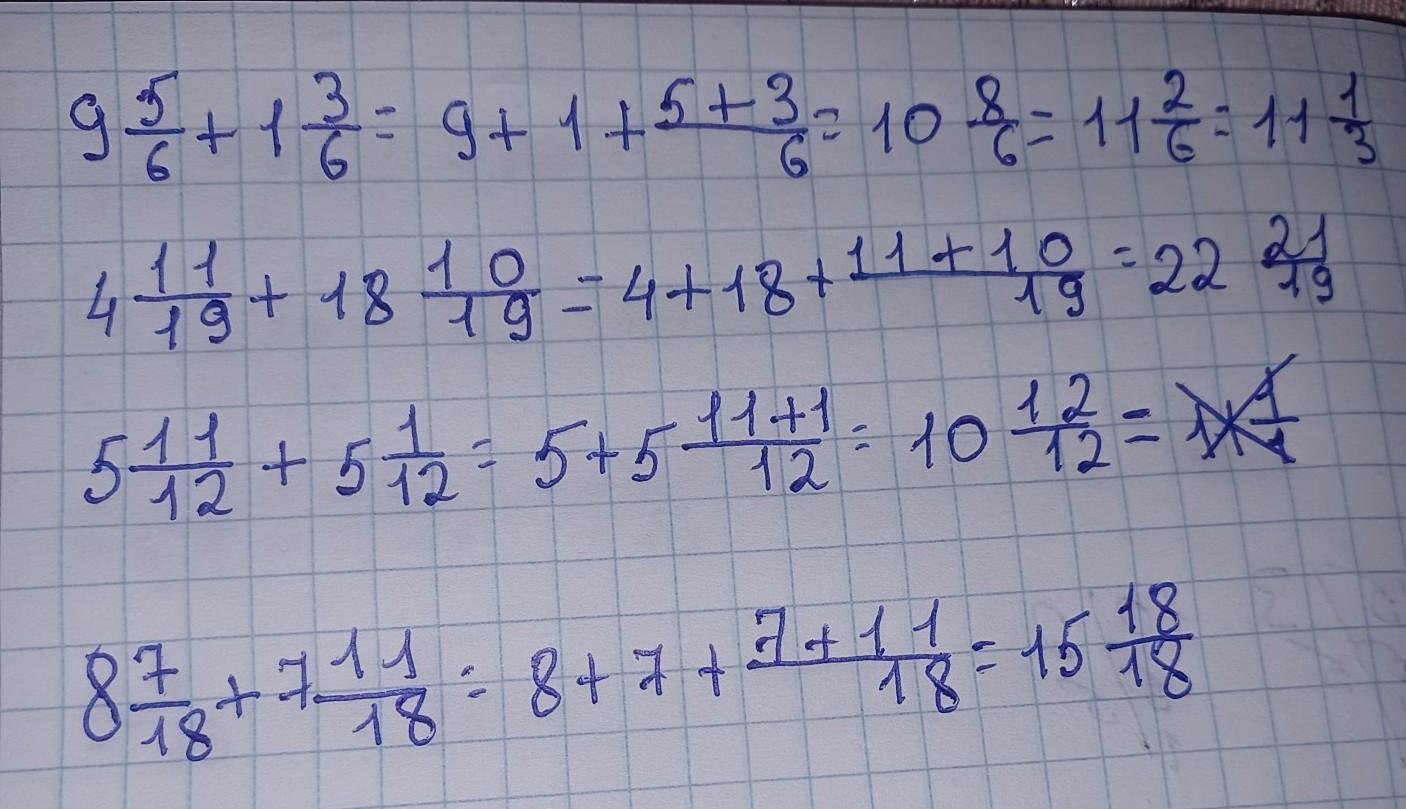 Подробное решение смешанных чисел, с общими знаменателями