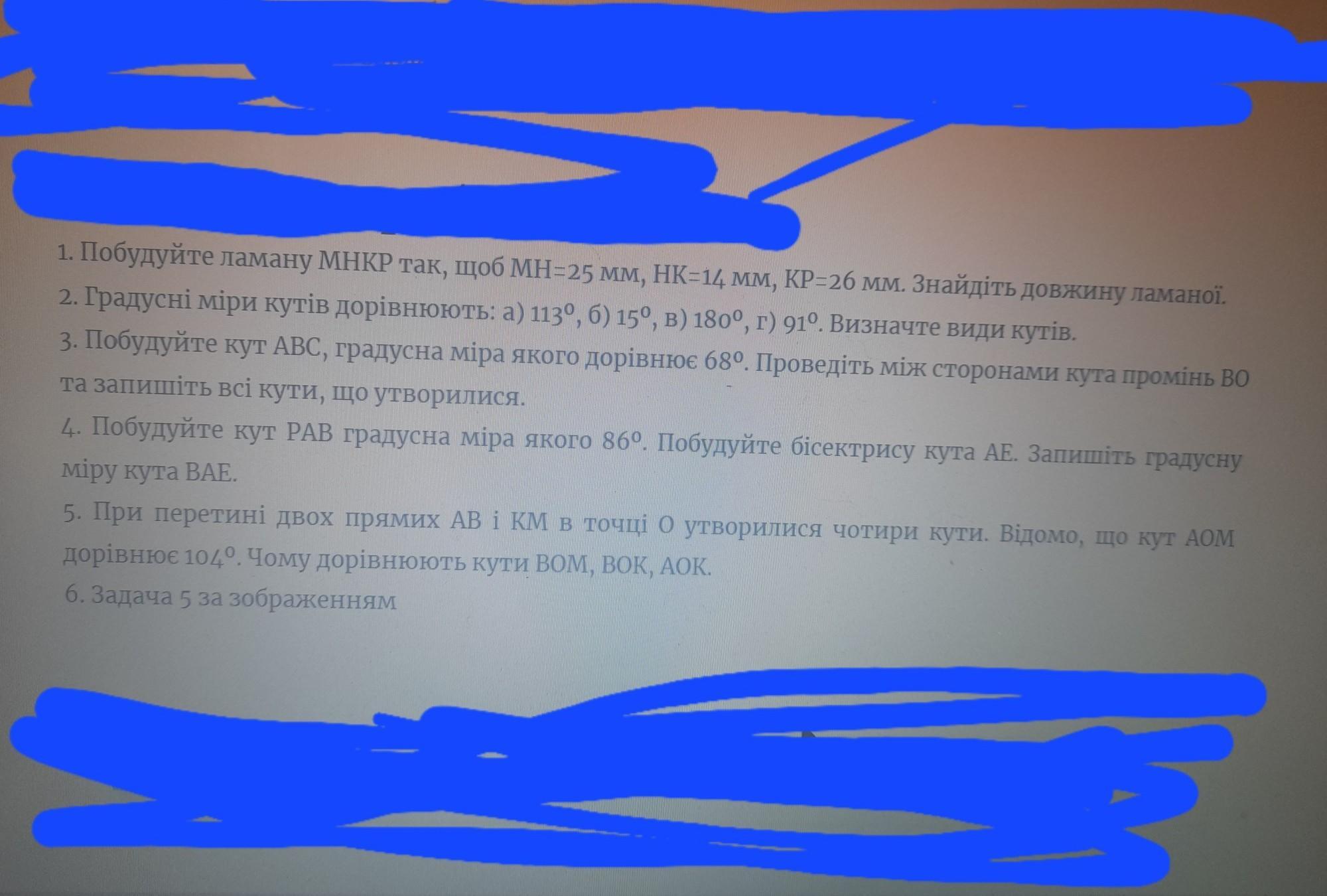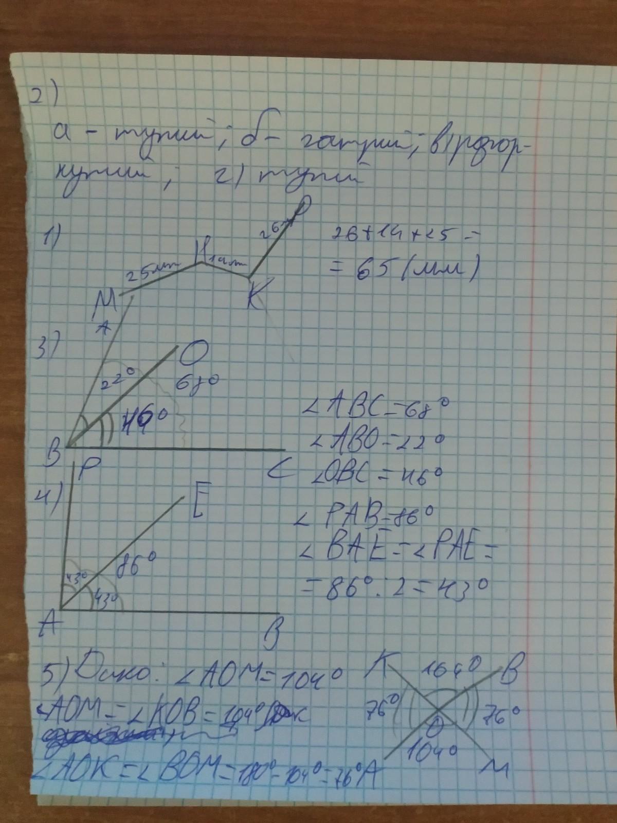 У п'ятому завданні АОМ=КОВ як вертикальні кути