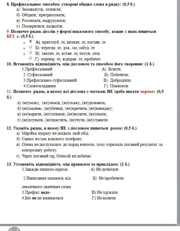 Відповідь:8 в, 9 г,10- 1б,2а,3г,4в, 11а,12г,13-1б,2в,3а,4г