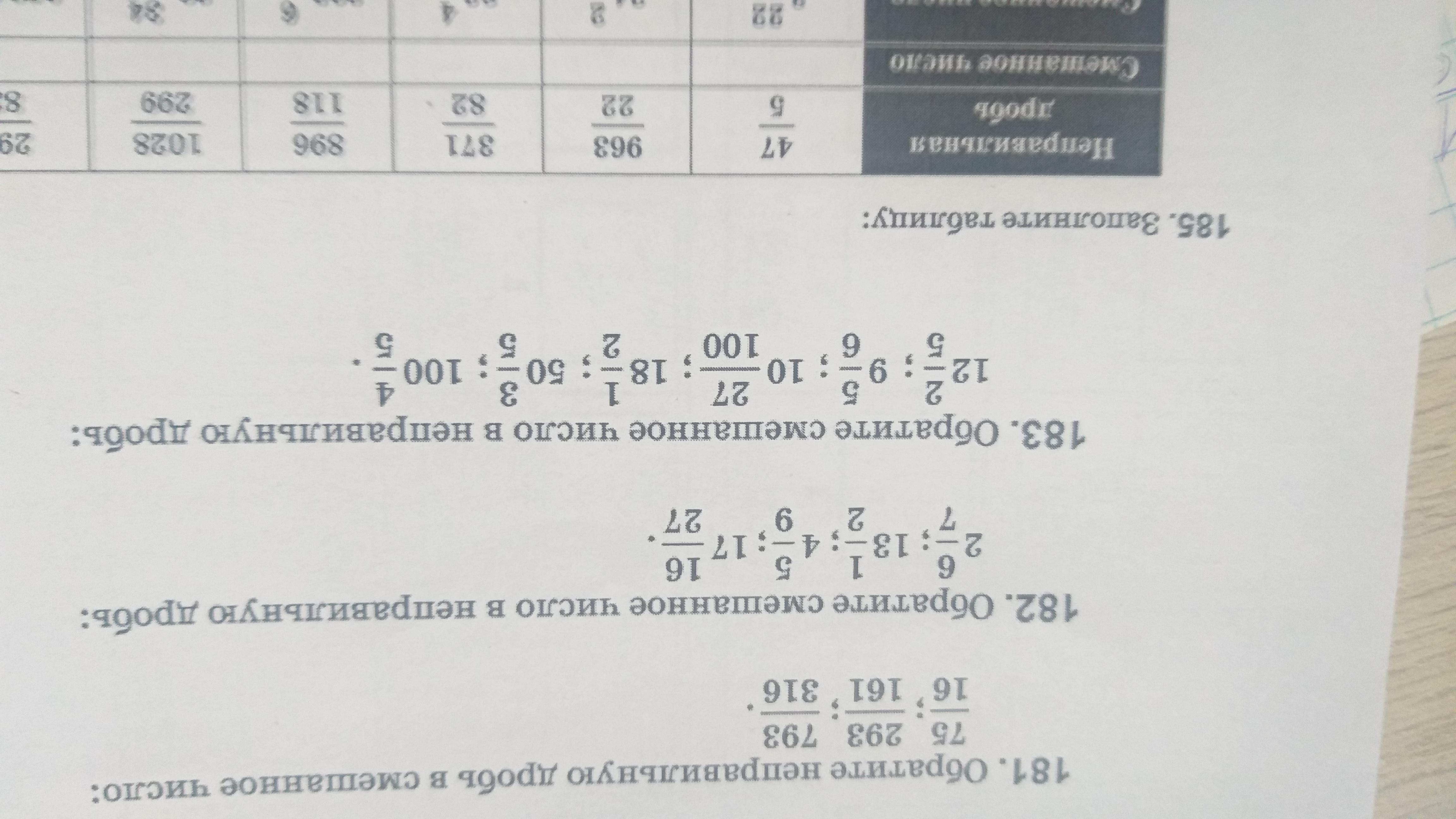 12целих 2/5=62/12, 9целих 5/6=41/6, 10целих 23/100=1023/100, 18целих 1/2=37/2, 50целих 3/5=253/5, 100целих 4/5=504/5 номер 183