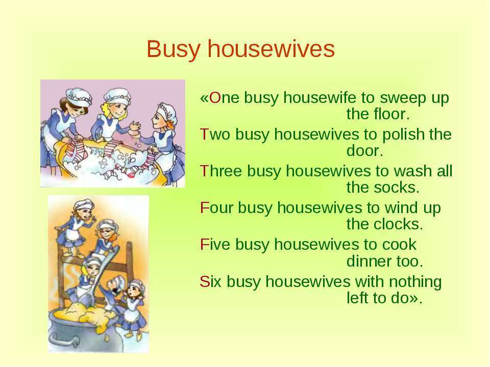 tuː ˈbɪzi ˈhaʊsˌwaɪvz tuː ˈpɒlɪʃ ðə dɔː.
