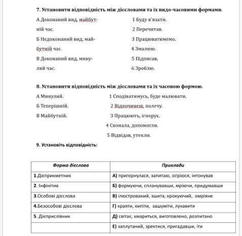 **9. Відповідність між формами дієслова та їх видами:**