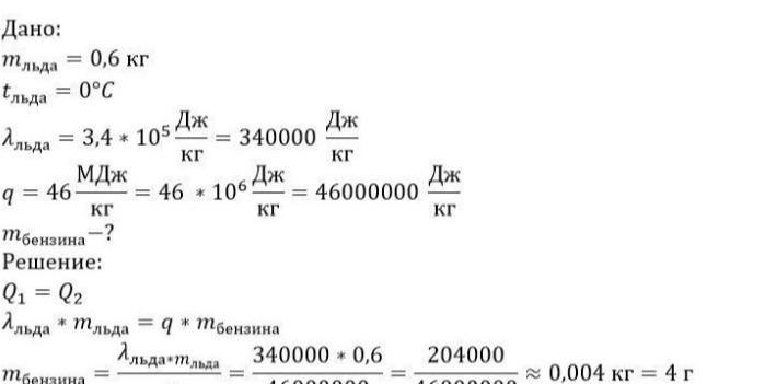 Определи массу бензина, если при его сгорании выделяется количество теплоты, которое полностью