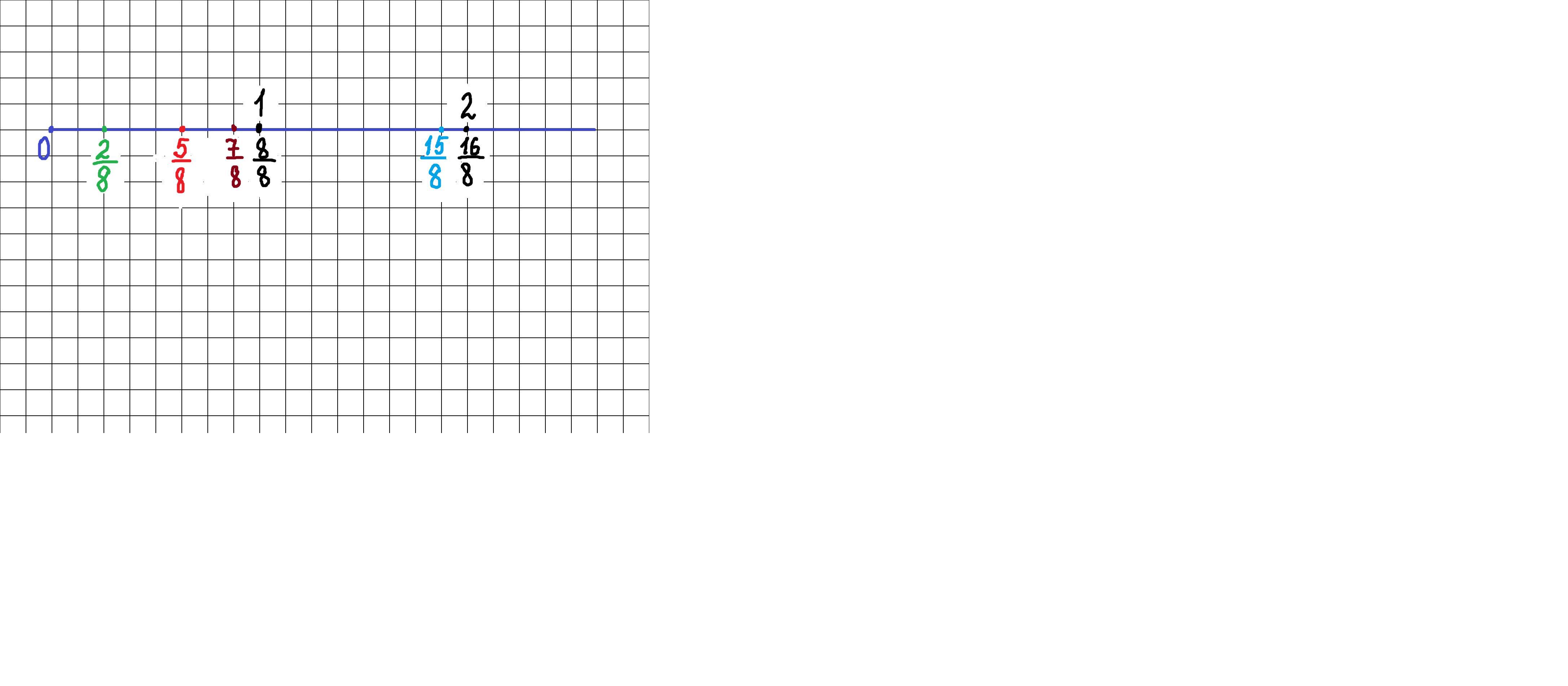 если 8 клеток это единичный отрезок,то тогда одна клеточка это 1/8