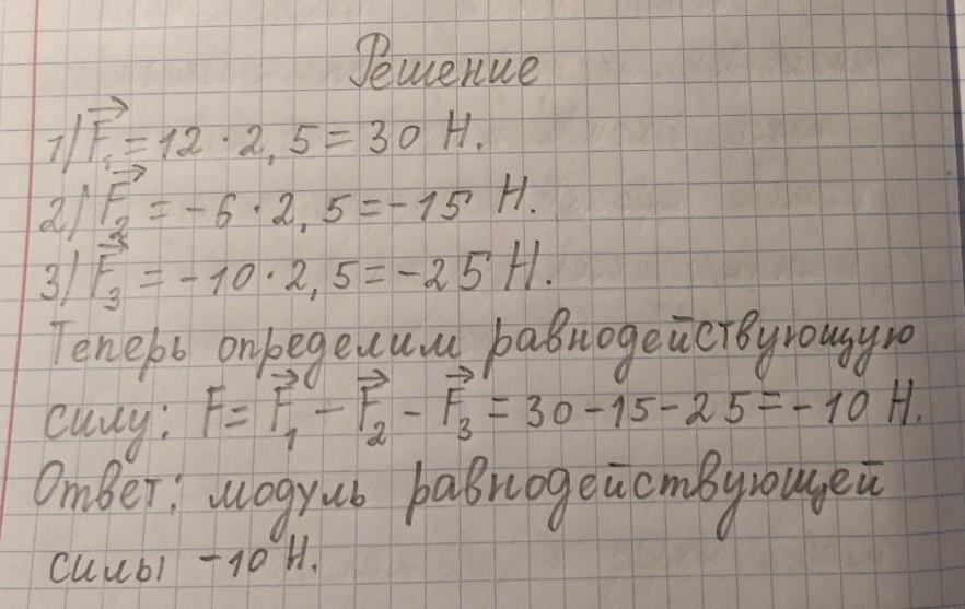 Ответ: модуль равнодействующей силы -10 Н.