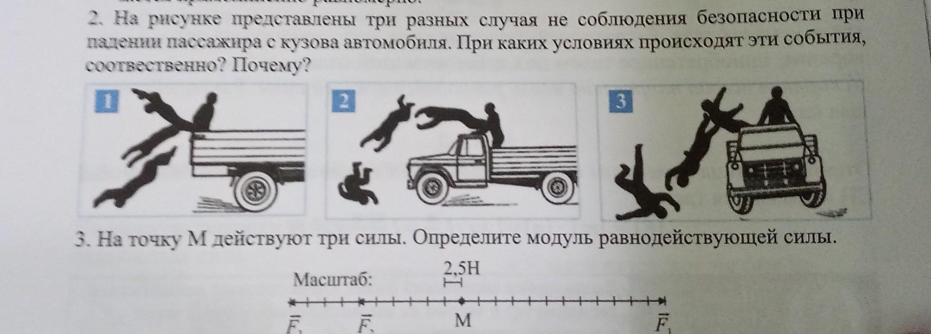 2. 1. при резком движении с места.