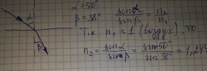 6 (26) Світло переходить із бензину (n=1,5) у лід (n=1,31). Кут заломлення 28°. Визначити кут падіння.