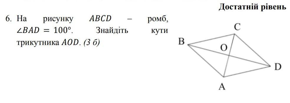 Сторони ромба рівні за властивістю діагоналі діляться навпіл за властивістю рб трикутника <АОД 90 тому що висота це медіана та біссектрисса