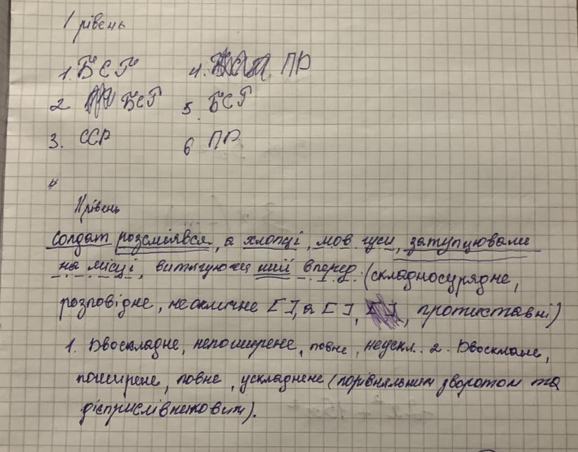 3. ССР - Солдат розсміявся, а хлопці, мов гуси, затупцювали на місці витягуючи шиї вперед. *(Складносурядне речення)*