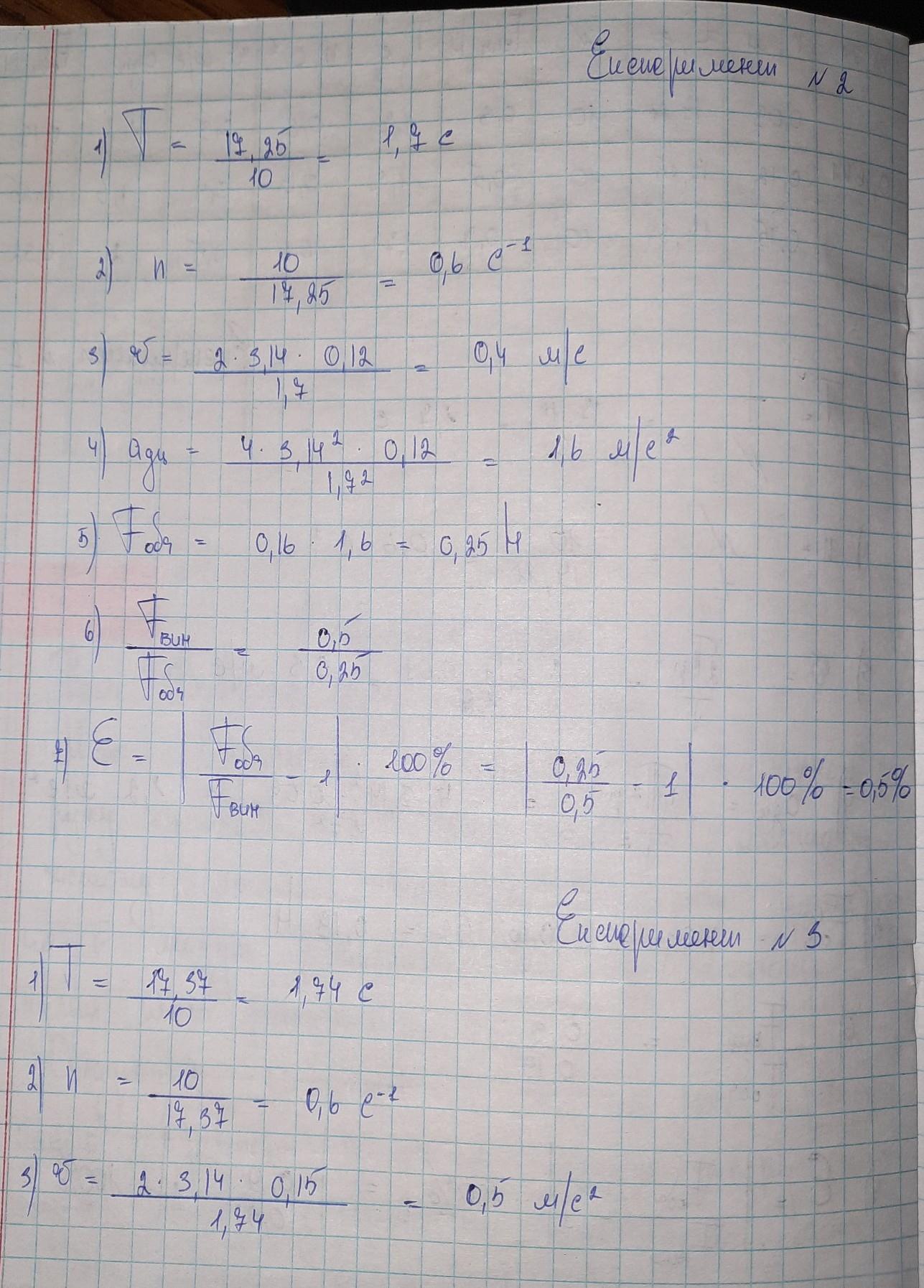 отже, спочатку пишеш: тему, мету та обладнання, вони є на фото в твоєму завданні. далі креслиш таблицю зі свого прикладу і починаєш вносити в неї величини з моєї (але тільки подивись уважно,щоб все було на своїх місцях, час до часу, обертання до обертань, тощо). нижче таблиці тобі треба буде записати "розрахунки" 3-ох експериментів (таблицю теж робиш відповідно для 3 есперементів), тобі треба буде переписати 1, 2, 3 та 4 пункти (для кожного експерименту окремо!! в мене позначено де який). в кінці пишеш висновок, його я напишу нижче