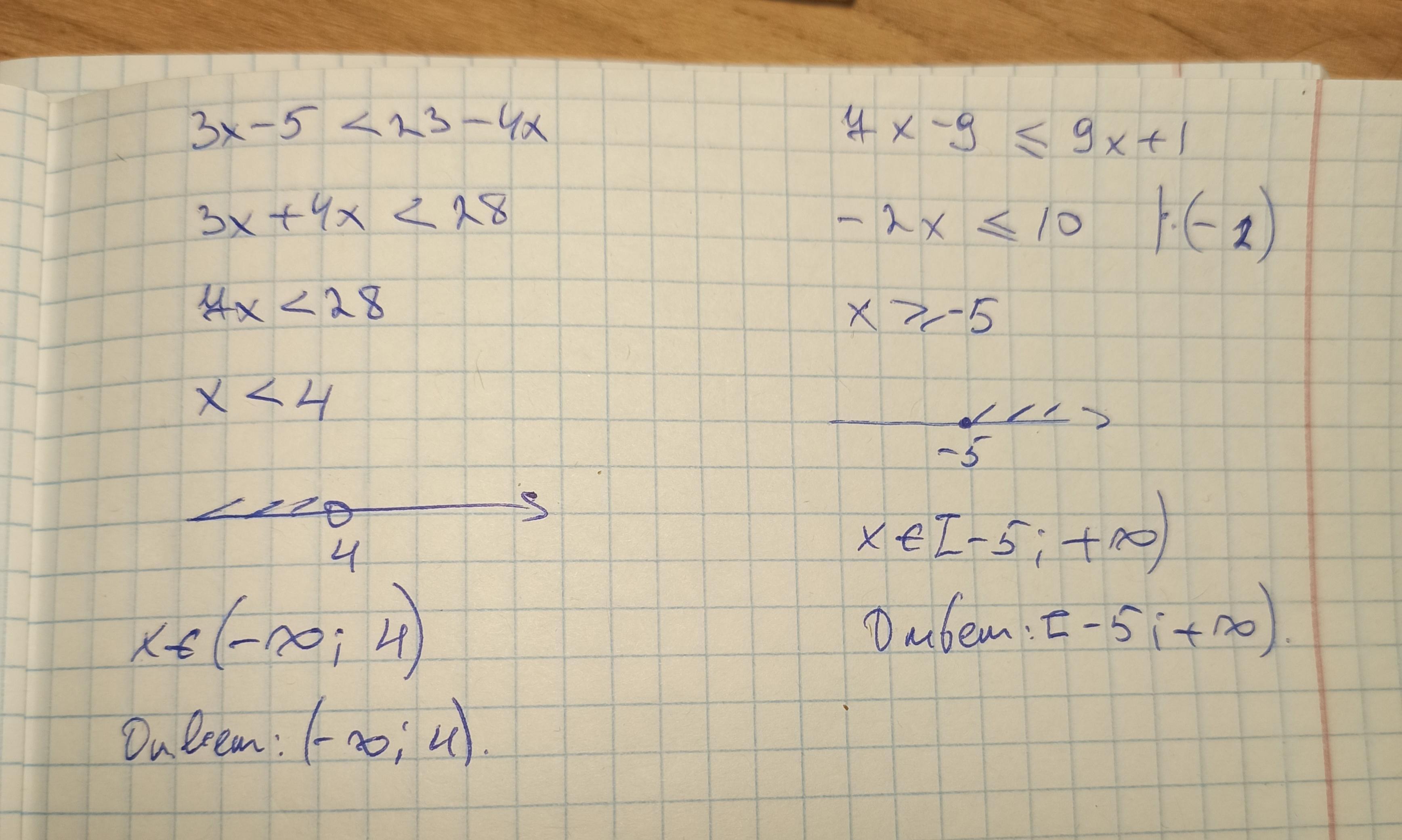 Объяснение: если это была система, а не два отдельных неравентсва, вместо двух отдельных ответов будет общий [-5;4)