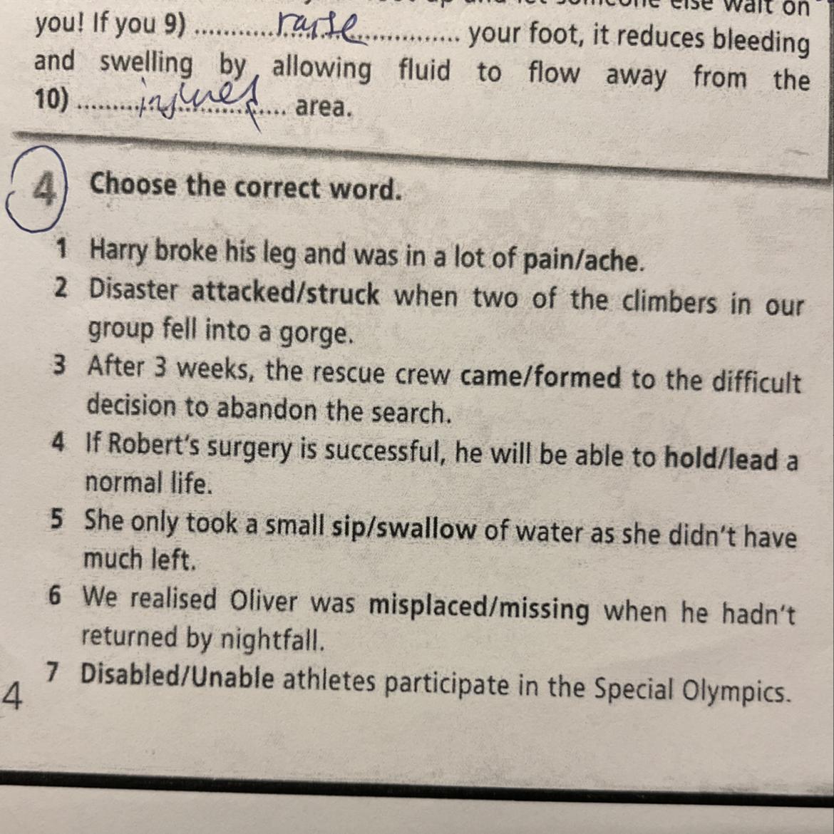 1. Harry broke his leg and was in a lot of pain.