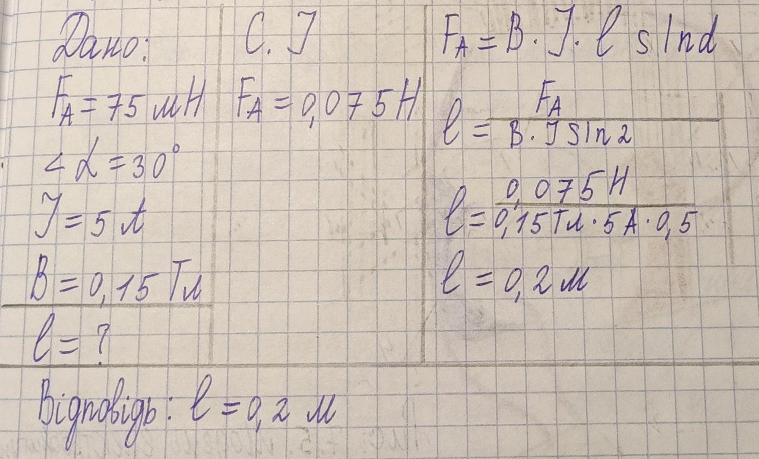 L=0,075 Н/0,15 Тл×5 А×0,5=0,2 м