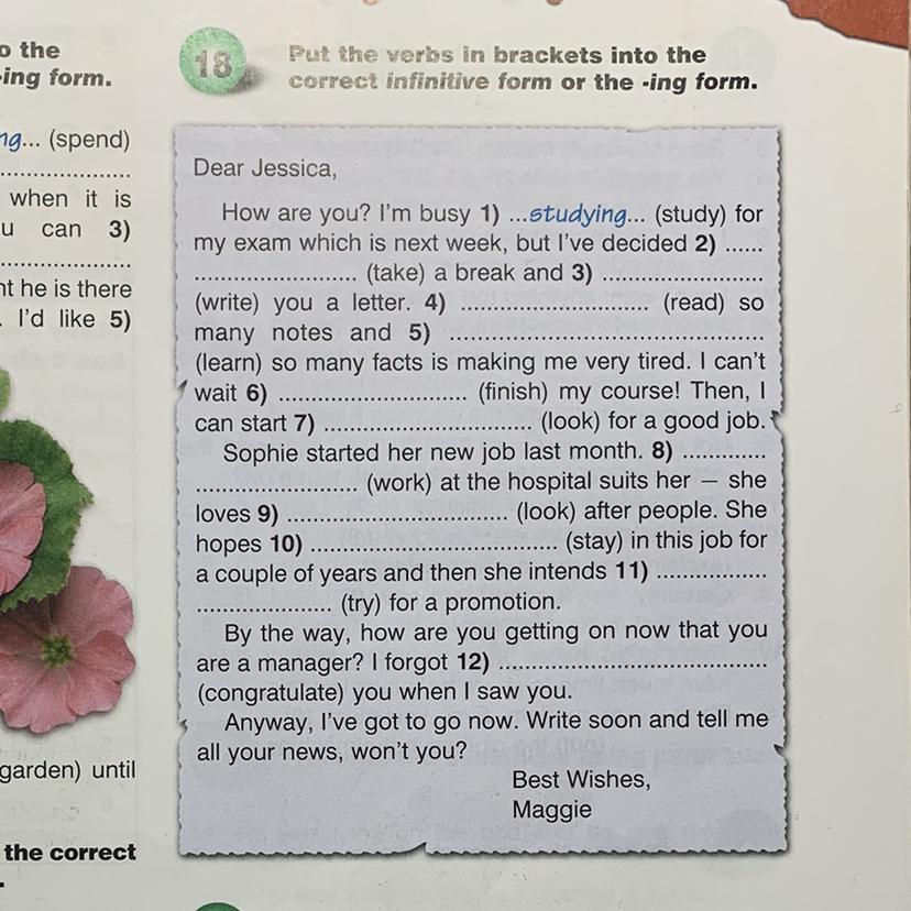 Відповідь:1- to take 2-write 3-read 4-leam 5-finishing 6-looking 7-worket