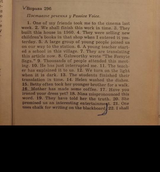 13. Have you written the letter yet? 14. They have told us a lot of interesting things. 15. The students have written the test paper without mistakes. 16. We discussed the matter some days ago. 17. Someone wants you on the phone. 18. She found my book on the windowsill. 19. They have built excellent shel. ters for tourists in these mountains. 20. Have you given the exercises to all the students? 21. The boy was angry because his mother did not allow him to go to the stadium. 22. Why have you put my books on this table?