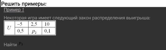 Некоторая игра имеет следующий закон распределения выигрыша: Найти р2